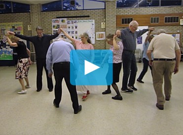 5‑8 | 1st couple swing, ending in the centre of a line of four all holding hands and facing down. |